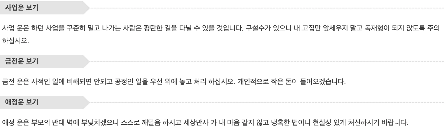 본 글은 띠별 운세와, 생년월일 운세를 다루고 있습니다. 더 자세한 운세를 무료로 확인하고 싶다면 무료 운세 사이트를 방문하여 확인하시길 바랍니다.